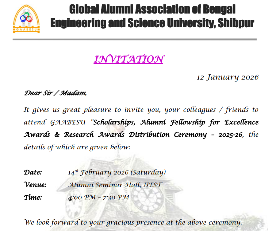 GAABESU, the Global Alumni Association of Indian Institute of Engineering Science & Technology, seeks to reach, serve, and engage all its alumni, faculty and students